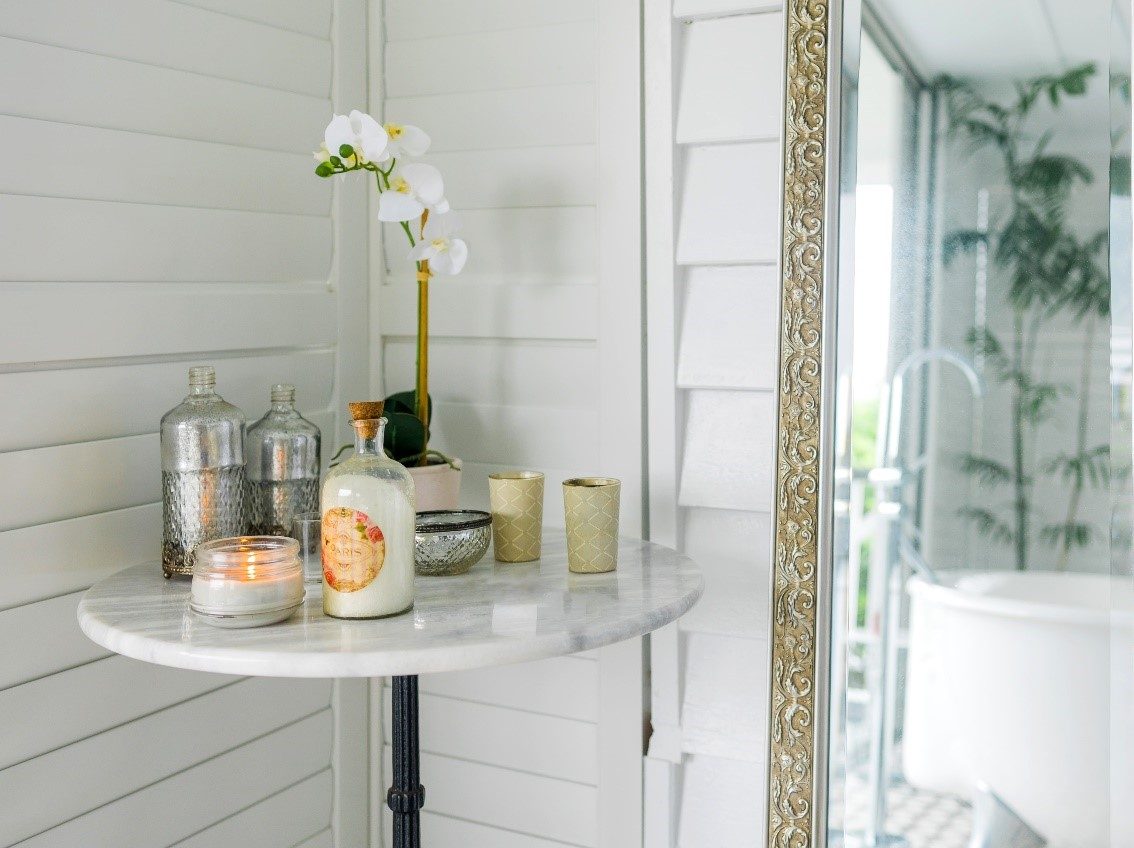 Any mirrored or reflective object can make a space feel bigger, especially if it’s already a small one. This type of décor may be more challenging to locate than other trinkets, but you can generally find candlestick holders and smaller decorative displays like bowls/frames/storage boxes that are mirrored.